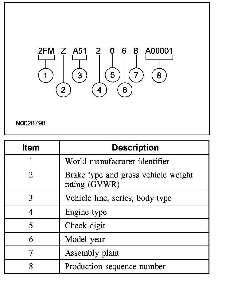 IDENTIFICATION CODESVehicle Identification Number
