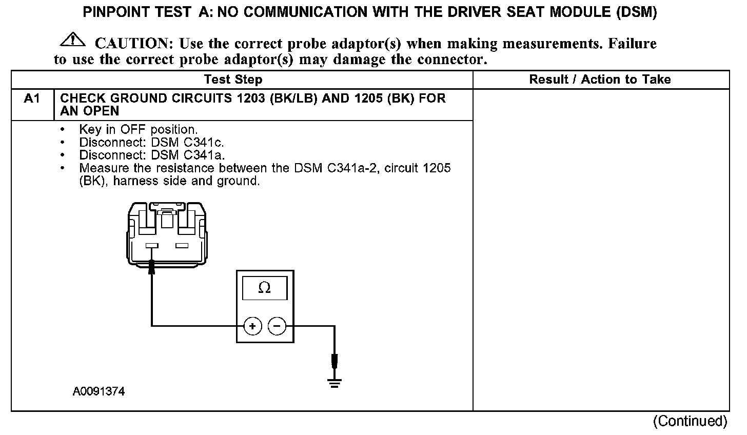 PINPOINT TEST A: NO COMMUNICATION WITH THE DRIVER SEAT MODULE (DSM)A1: