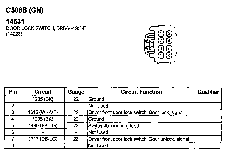 Door Lock Switch, Driver Side