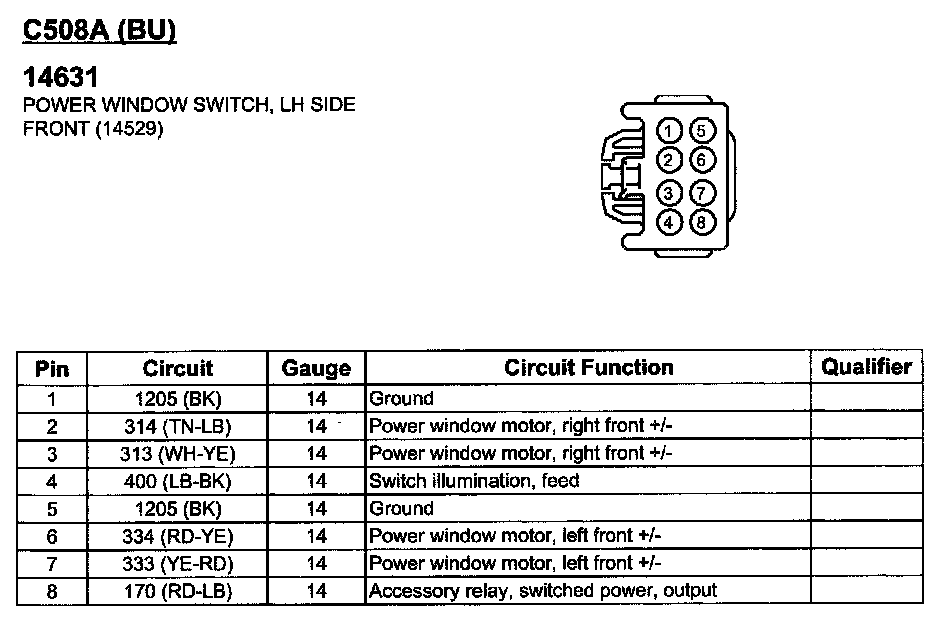 Power Window Switch, LH Side Front