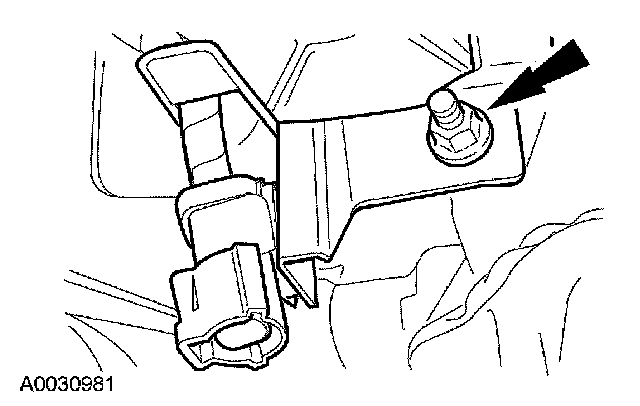 6. Install the catalyst monitor sensor electrical connector bracket and the nut.