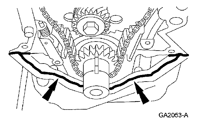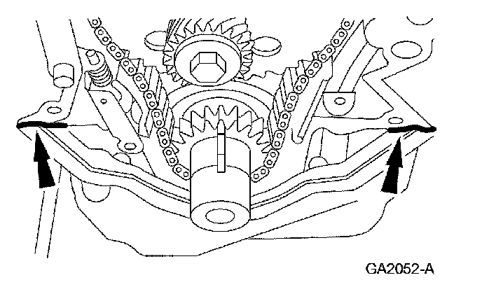 3. Install the engine front cover gasket and apply a small amount of silicone gasket and sealant as shown.