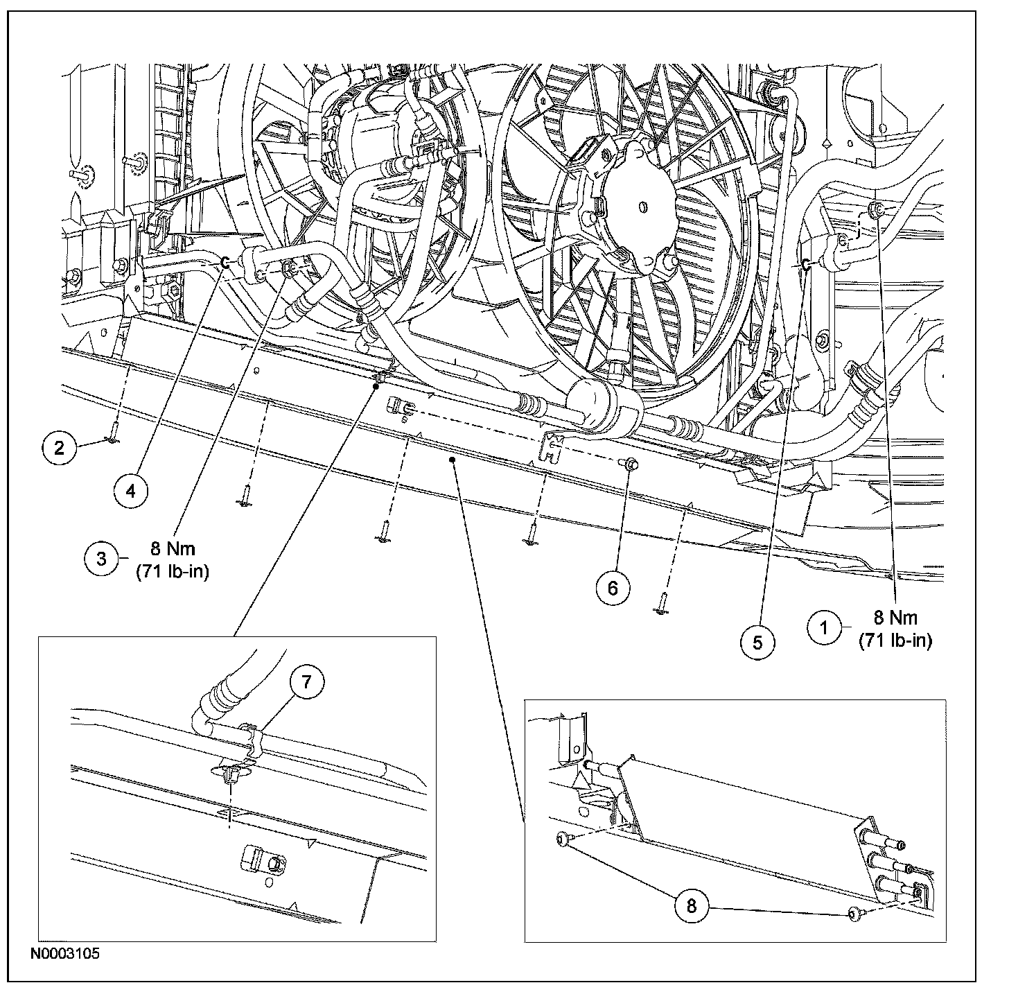 NOTE: Installation of a new suction accumulator is not required when repairing the air conditioning system, except when there is physical evidence of system contamination from a failed A/C compressor or damage to the suction accumulator.