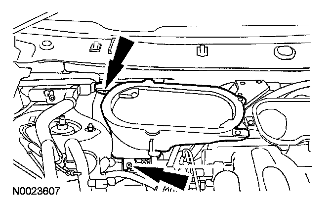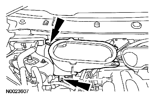 NOTE: Installation of a new suction accumulator is not required when repairing the air conditioning system, except when there is physical evidence of system contamination from a failed A/C compressor or damage to the suction accumulator.