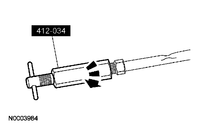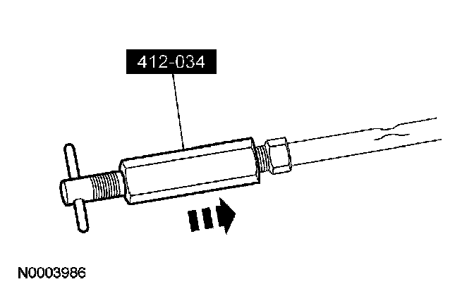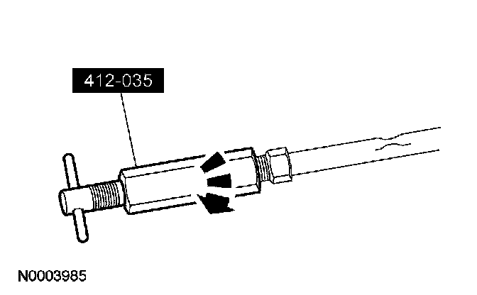 7. If the evaporator core orifice is intact, engage the special tool. Hold the T-handle stationary while rotating the tool body to remove the evaporator core orifice.