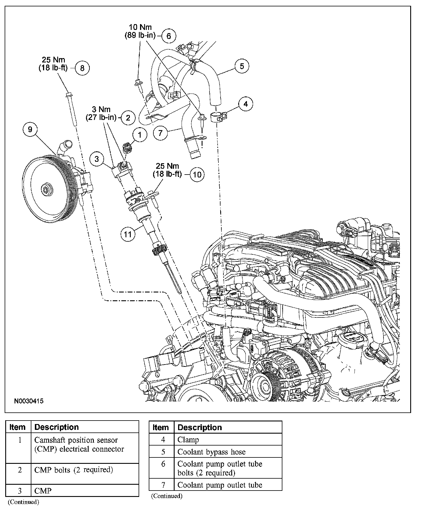 7. Connect the coolant bypass hose to the coolant pump outlet tube.