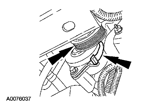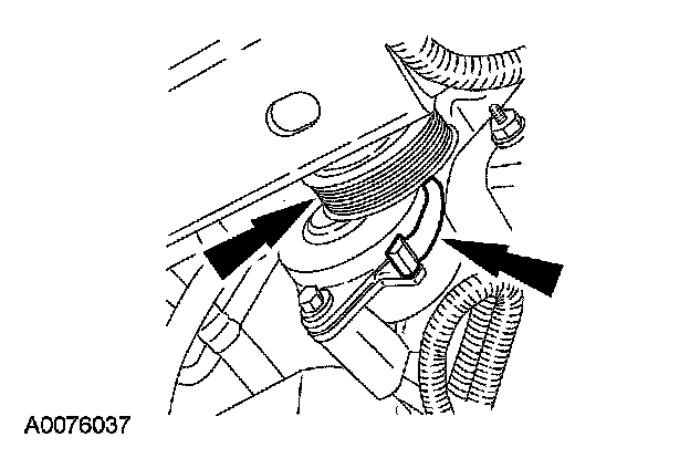 - Push the spring clip toward the belt tensioner to lock the accessory drive belt tensioner in place.