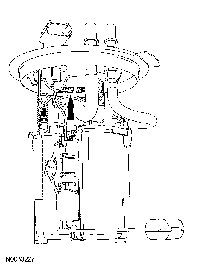 6. Wrap the sending unit wire around the fuel pump module wire harness to make sure the wire will not interfere with the movement of the fuel gauge sending unit float arm.
