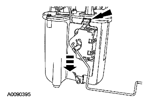 1. Route the fuel gauge sending unit wire through the center of the fuel pump module.