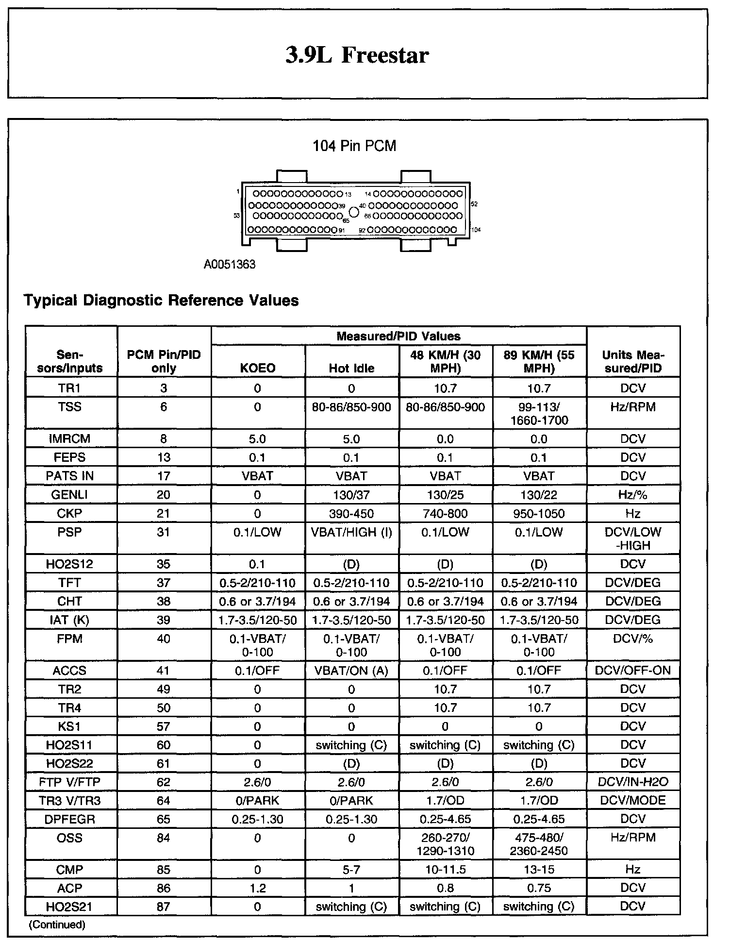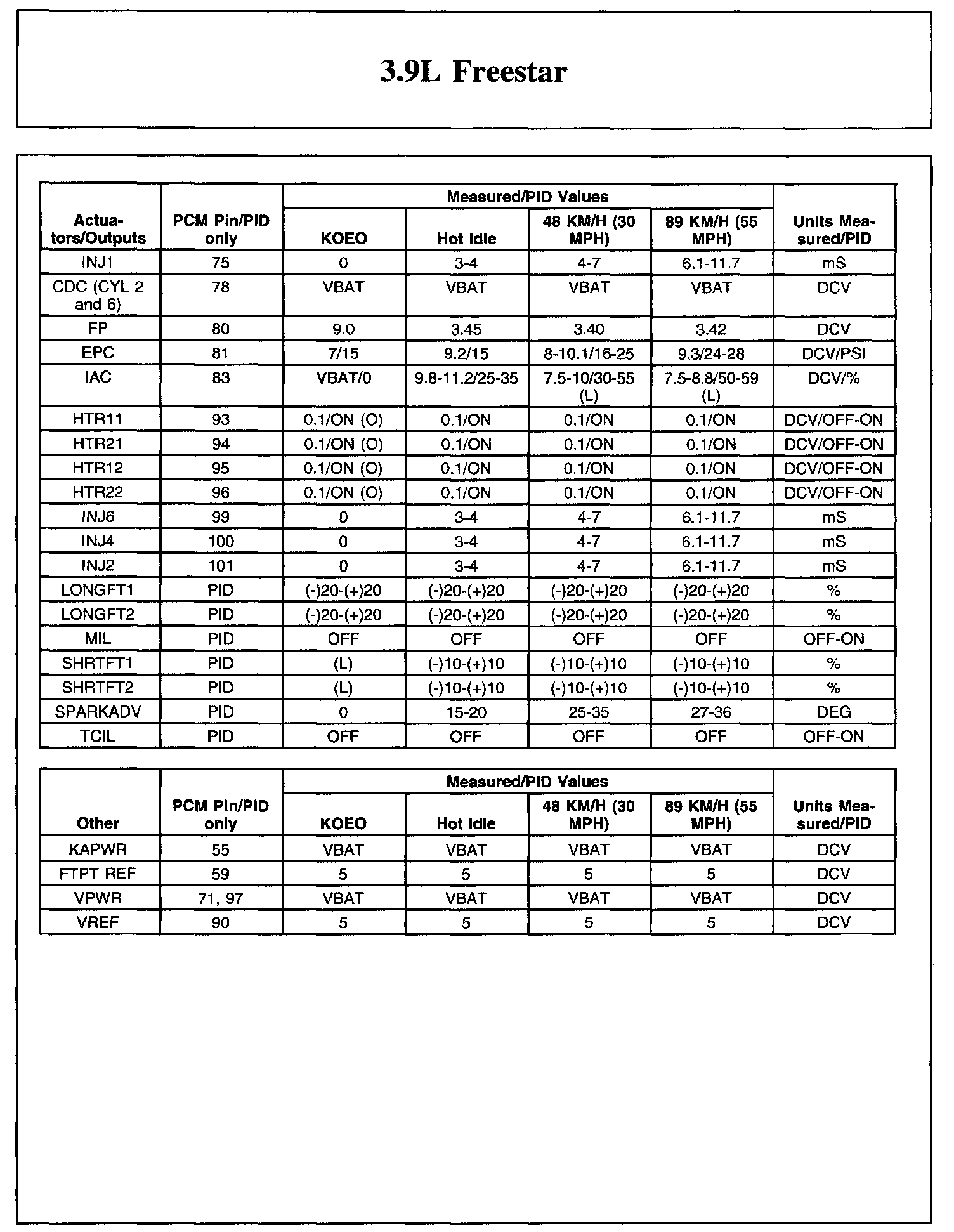The Typical Diagnostic Reference Value Charts do not display fault parameter identifications (PIDs). These are PIDs which indicate a hard fault with the circuit. They display a value of YES or NO and are PIDs ending with the letter F.