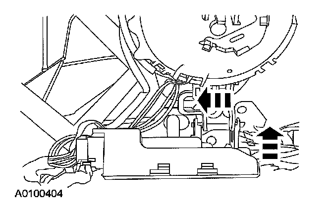 6. Pivot the power sliding door module upward and carefully slide the module to the left to detach module from the drive assembly.