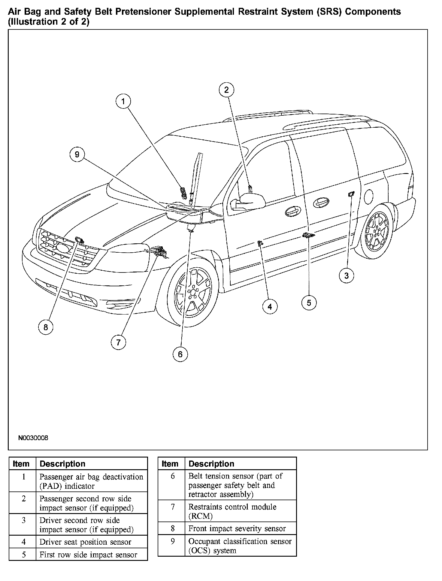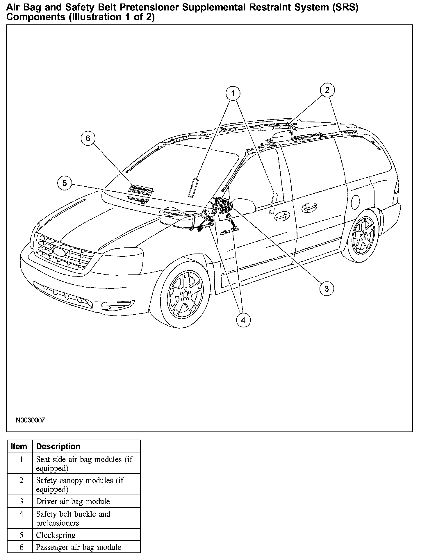 Air Bag And Safety Belt Pretensioner Supplemental Restraint System (SRS) Components (Illustration 2 Of 2):