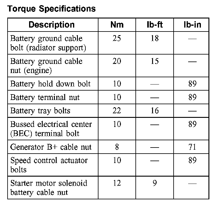 Torque Specifications: