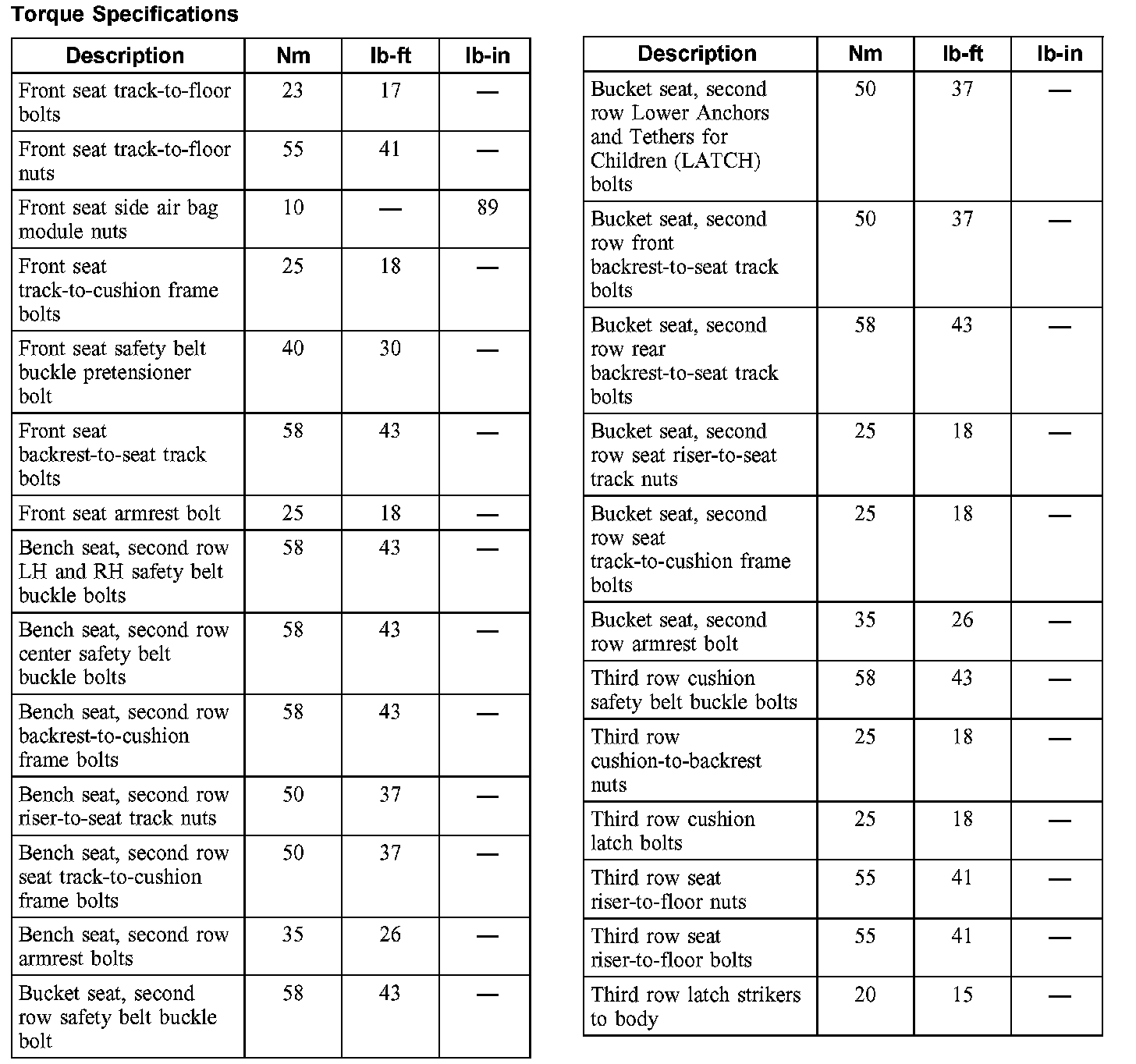 Torque Specifications: