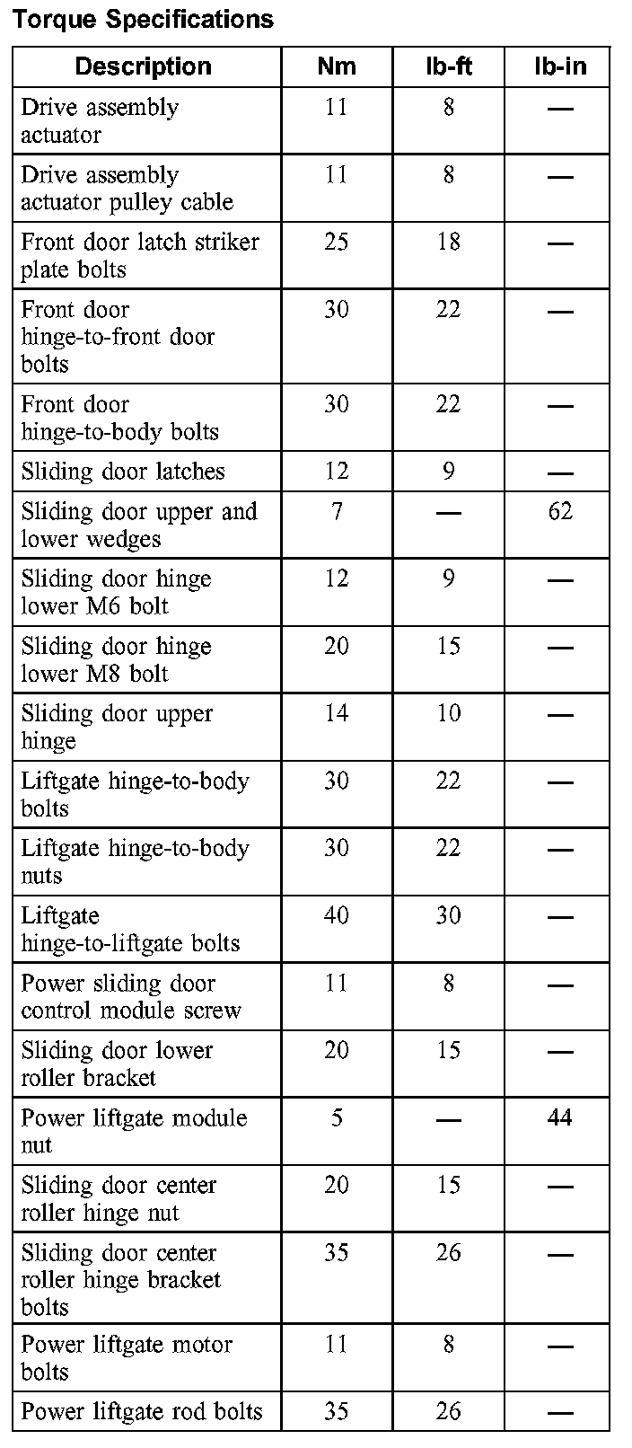 Torque Specifications