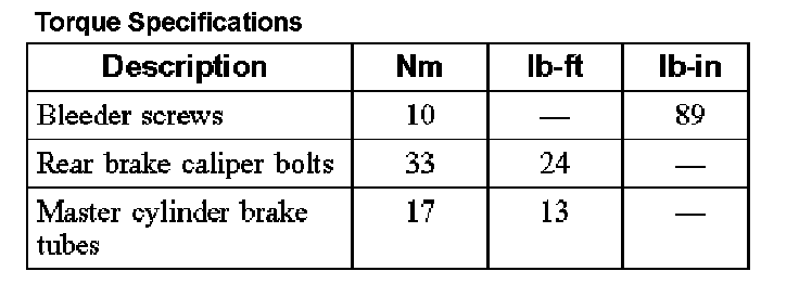 Torque Specifications: