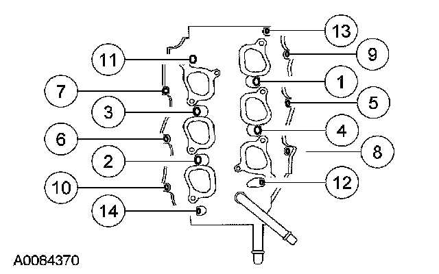 Tighten the lower intake manifold bolts in 2 stages in the sequence shown.