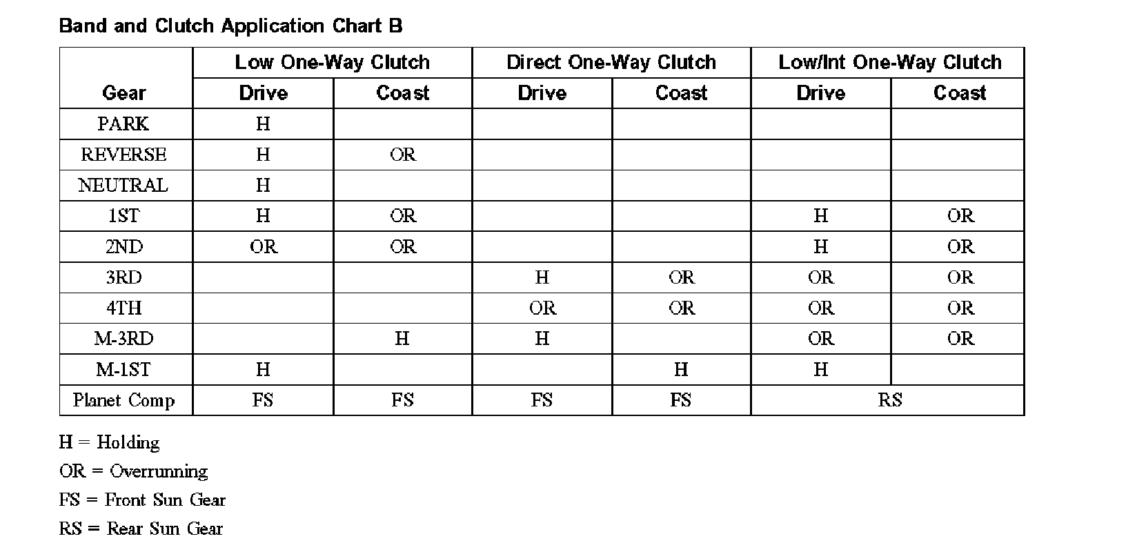 Band and Clutch Application Chart B: