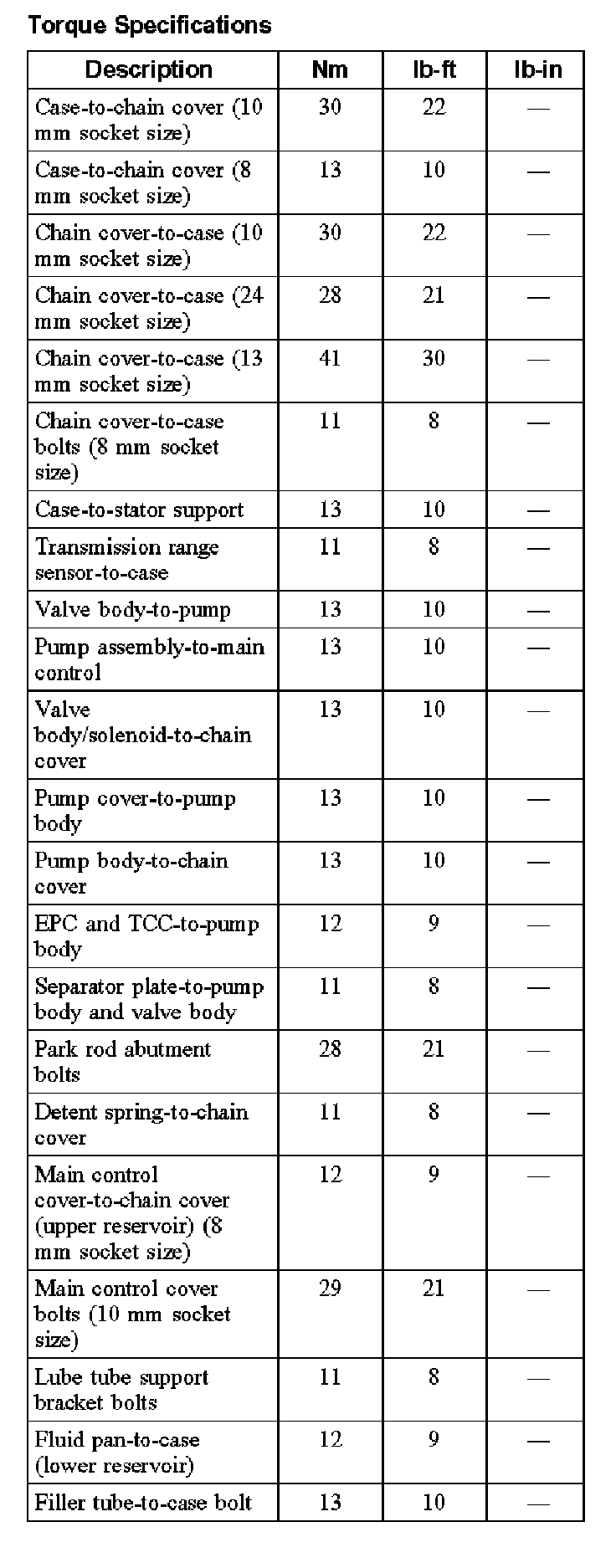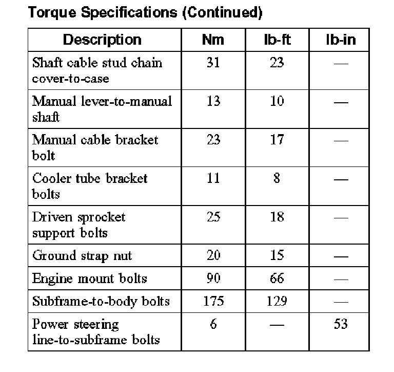 Torque Specifications