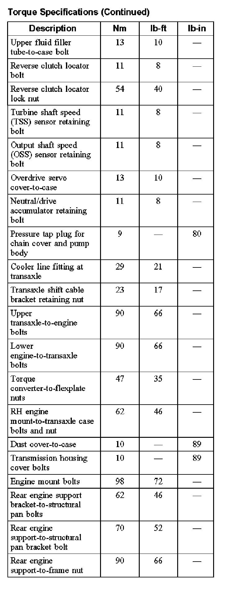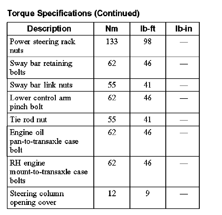 Torque Specifications: