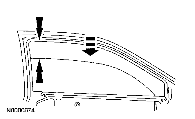 2. Partially lower the front door window glass to within 75 mm (2.95 in) of the full UP position.
