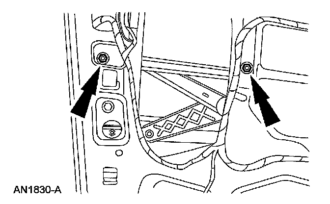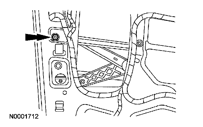 7. NOTE: If the hole is a vertical slotted hole, make sure that the nut and washer assembly is positioned at the bottom of the slot before downward pressure is applied to the window regulator equalizer arm bracket.