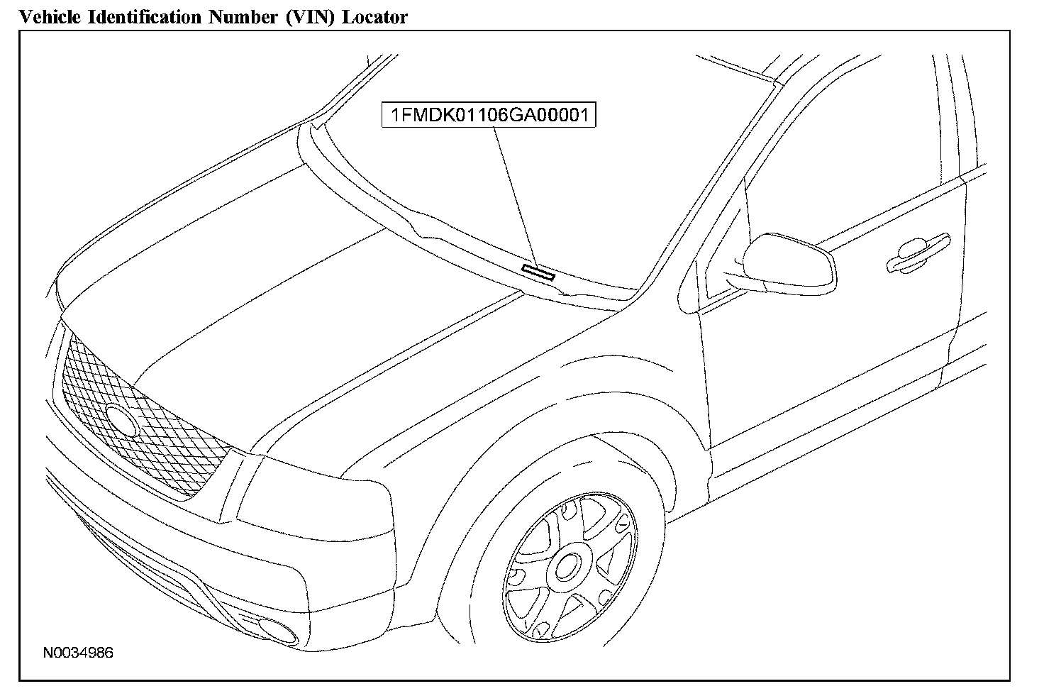 The vehicle identification number (VIN) is a 17-digit combination of letters and numbers. The VIN is stamped on a metal tab riveted to the instrument panel top, upper left of the dash. The VIN is also found on the vehicle certification (VC) label.