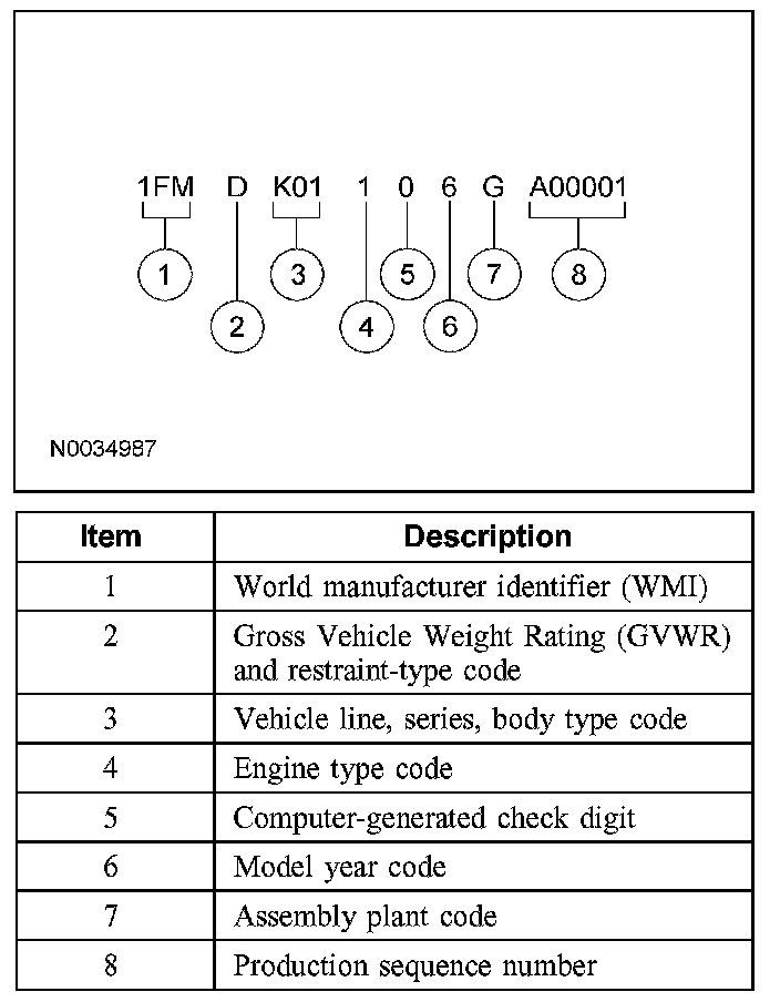 IDENTIFICATION CODESVehicle Identification Number (VIN)