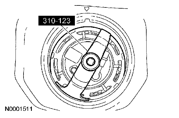 12. Install the special tool and remove the fuel pump module lock ring.