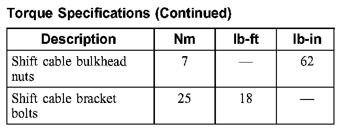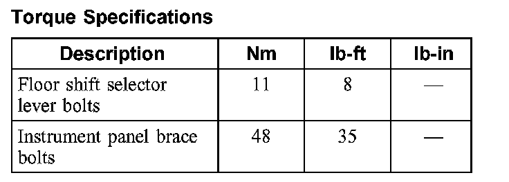 Torque Specifications: