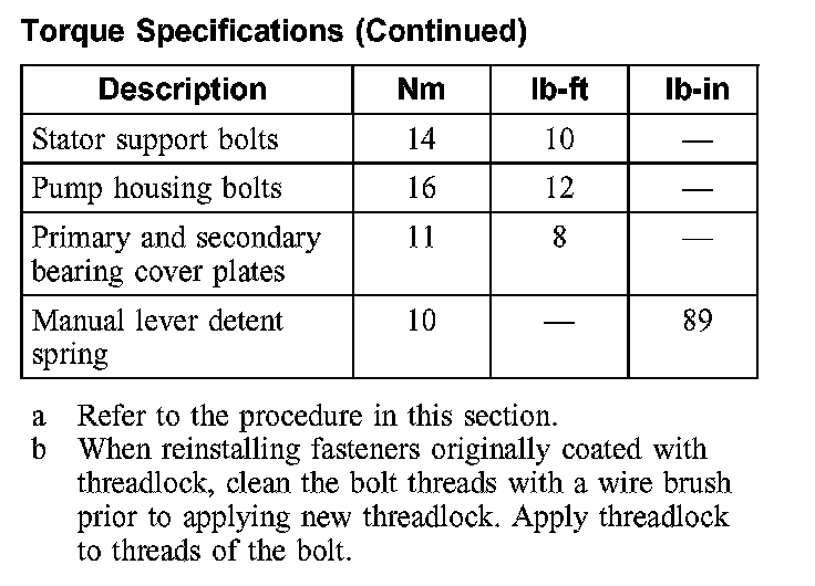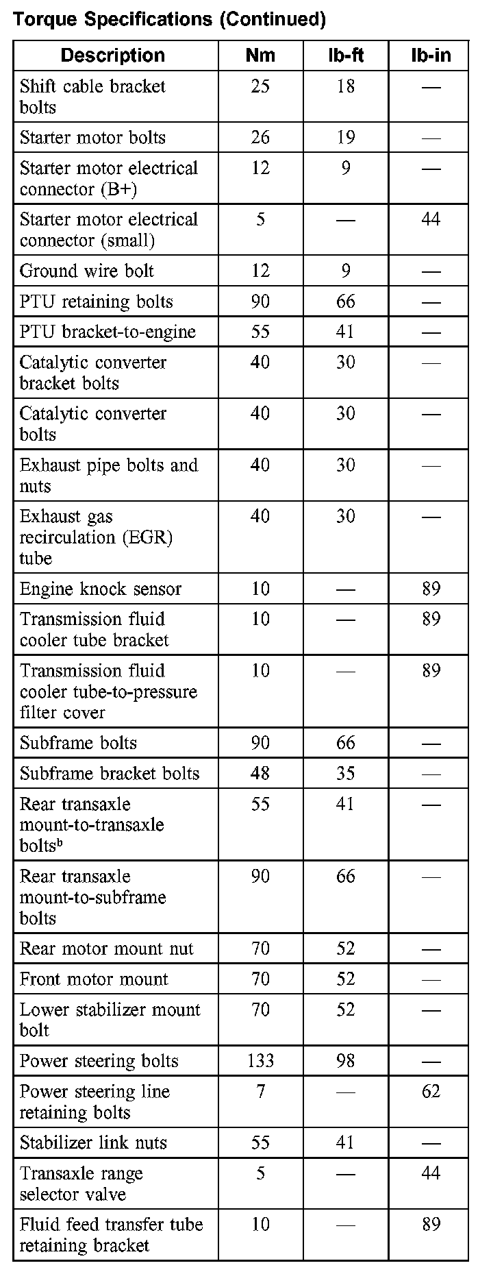 Torque Specifications: