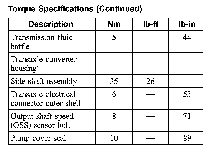 Torque Specifications