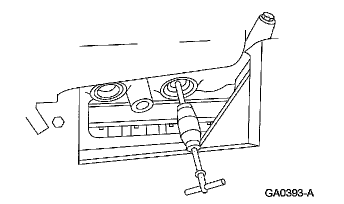2. Inspect the cylinder block plug bore for any damage that would interfere with the correct sealing of the plug. If the cylinder block plug bore is damaged, bore for the next oversize plug.