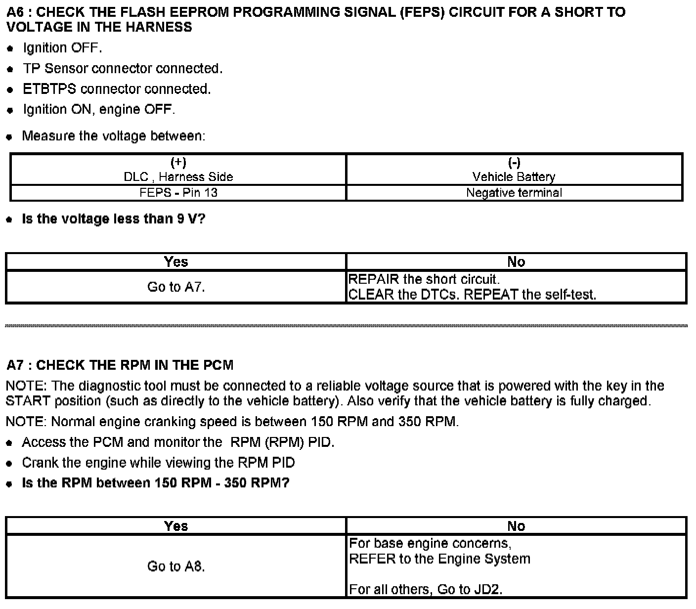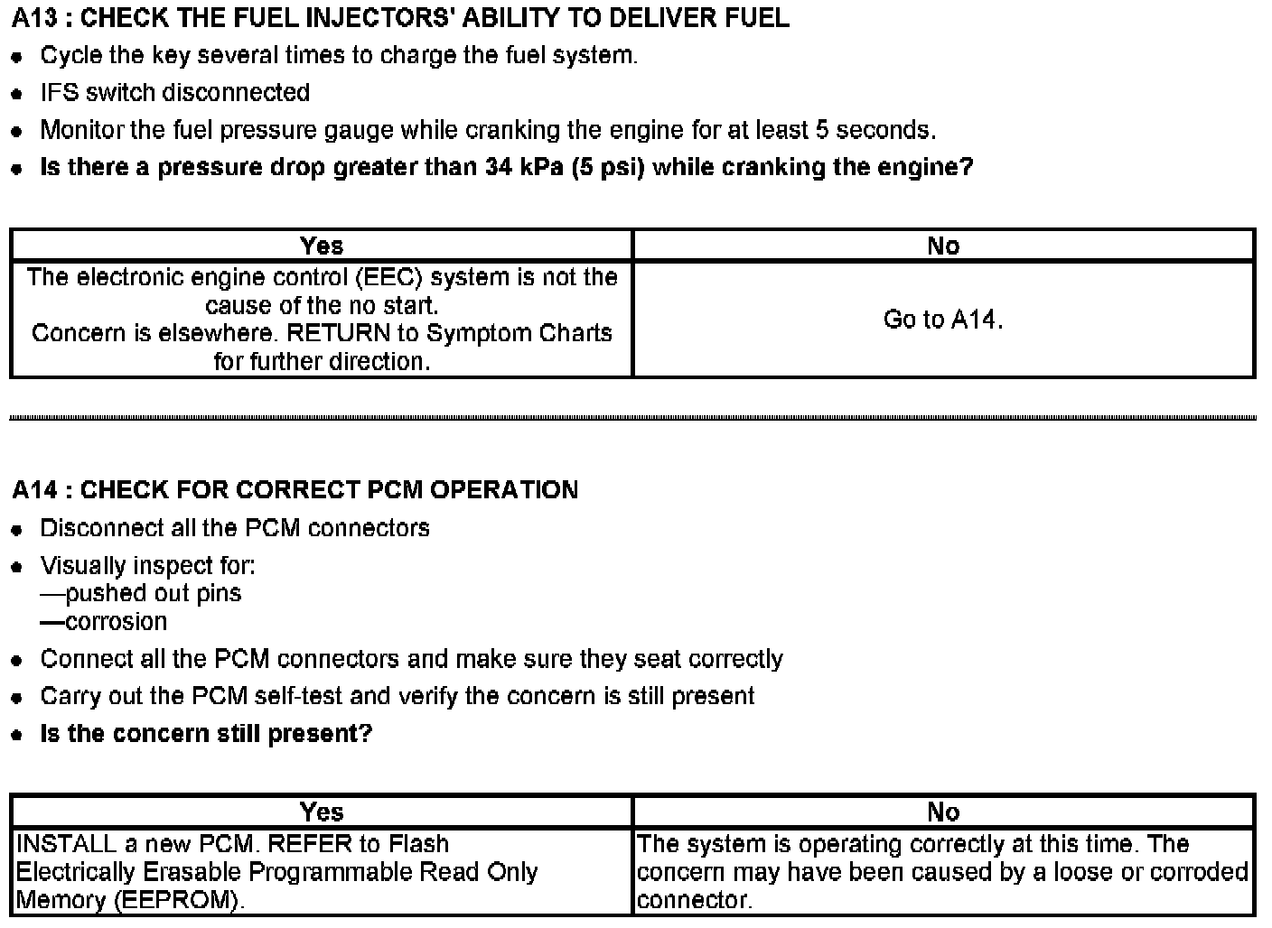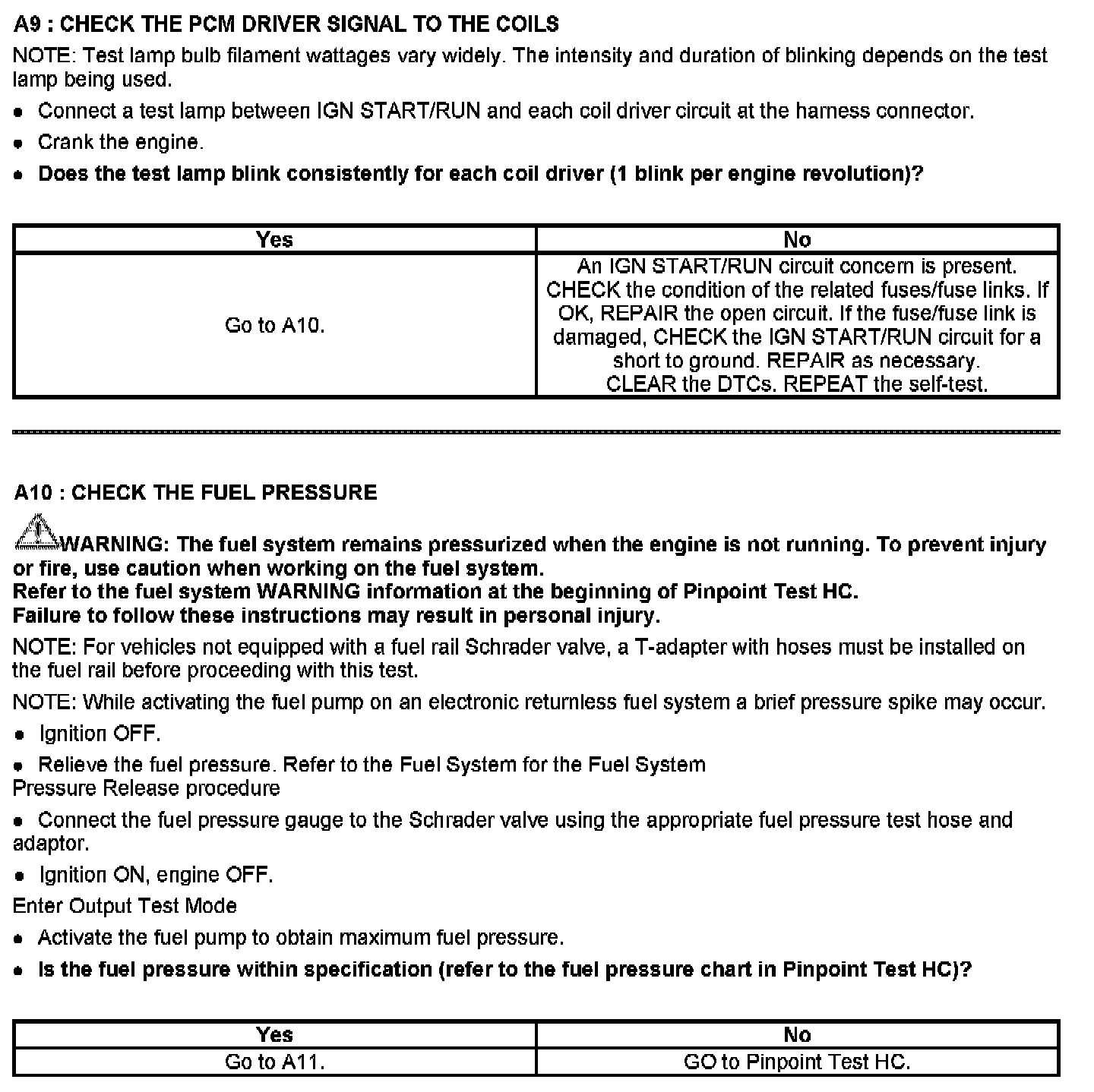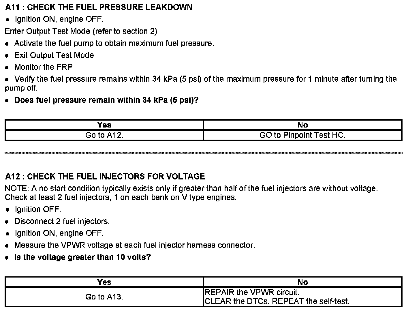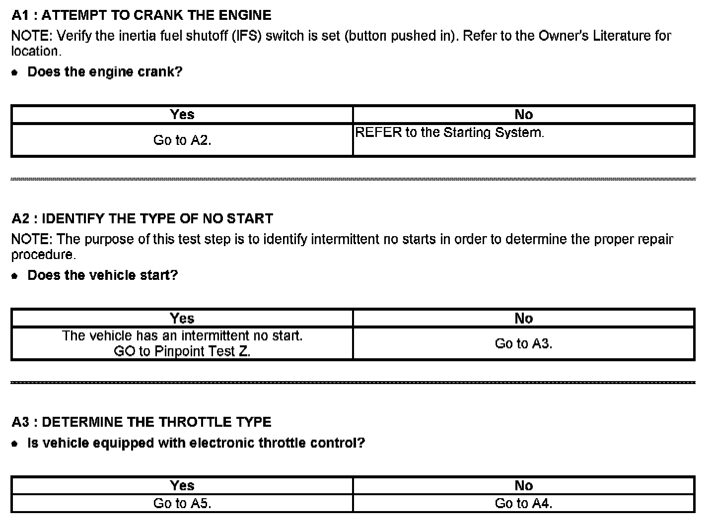 PINPOINT TEST A: No Start