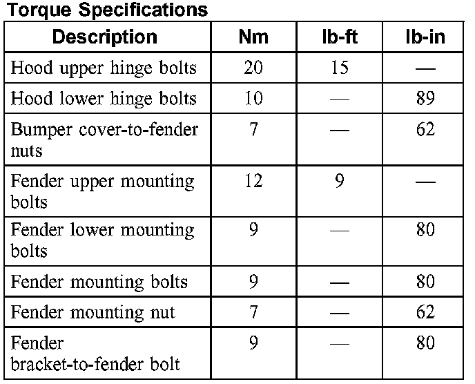 Torque Specifications: