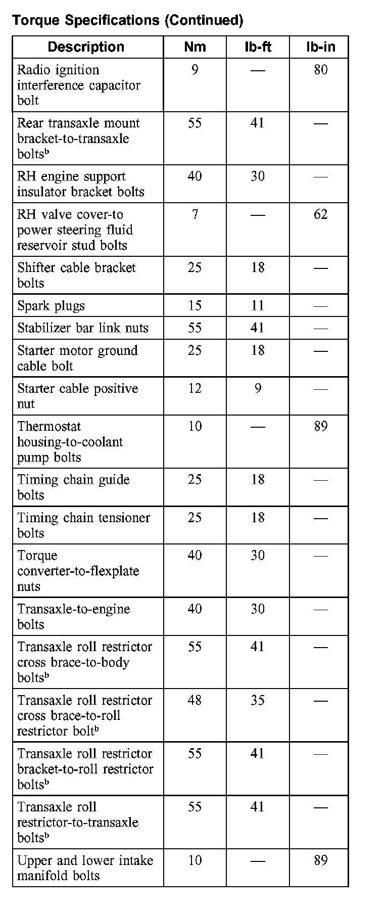 Torque Specifications: