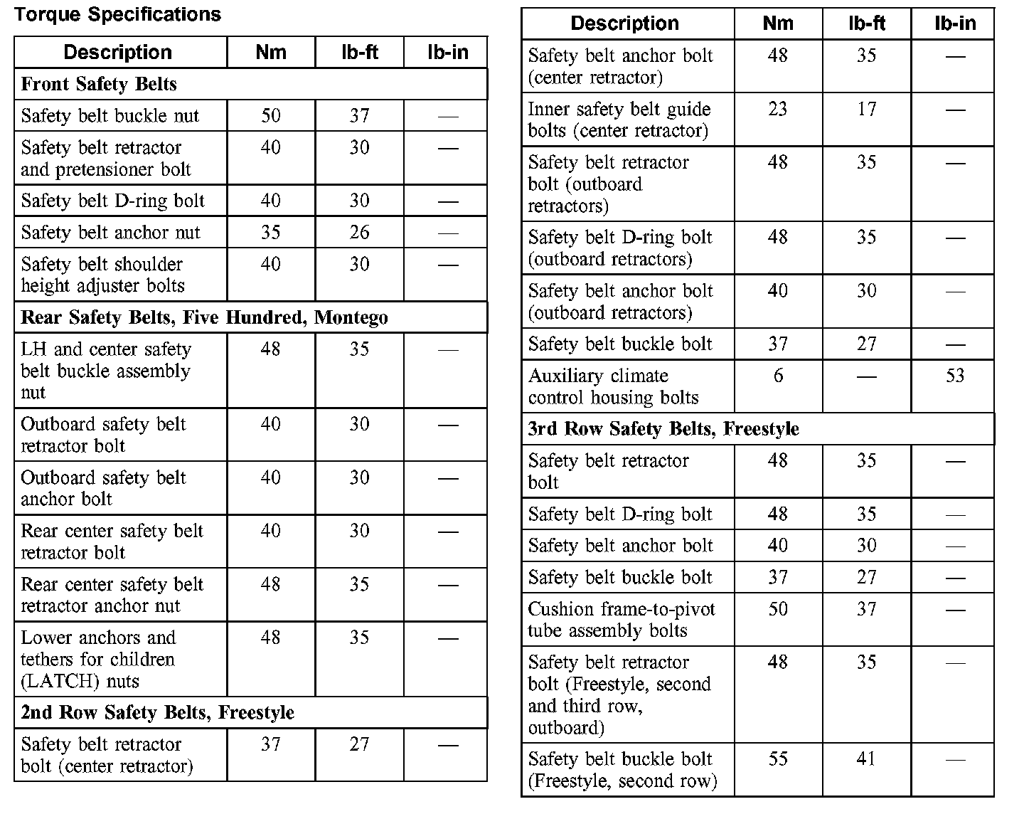 Torque Specifications: