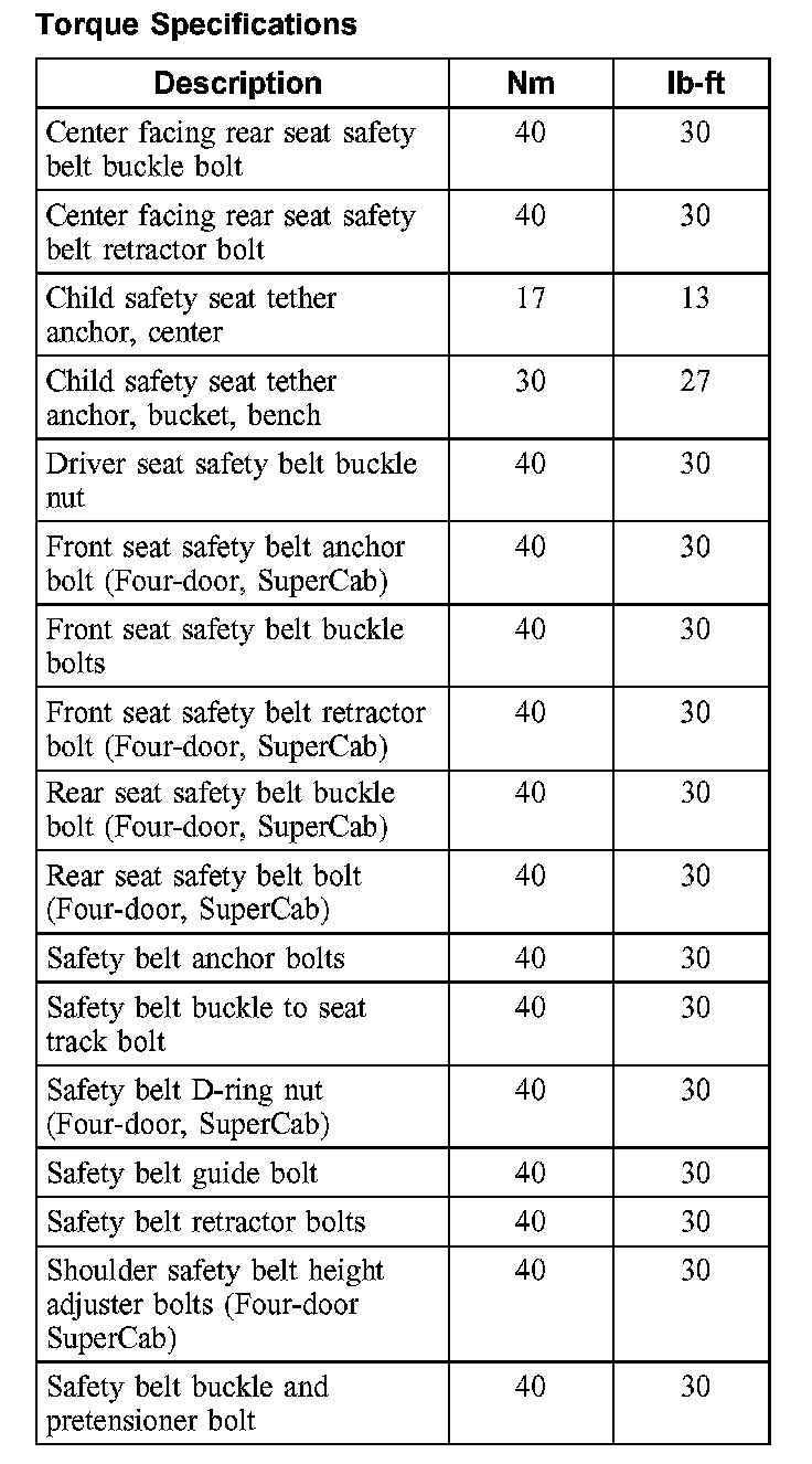 Seat Belt Systems: Specifications