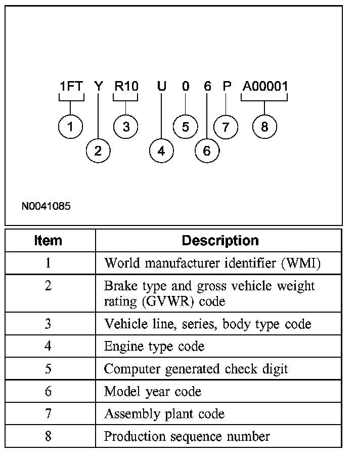 IDENTIFICATION CODESVehicle Identification Number (VIN)
