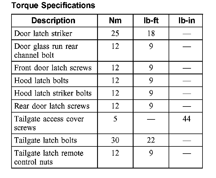 Torque Specifications: