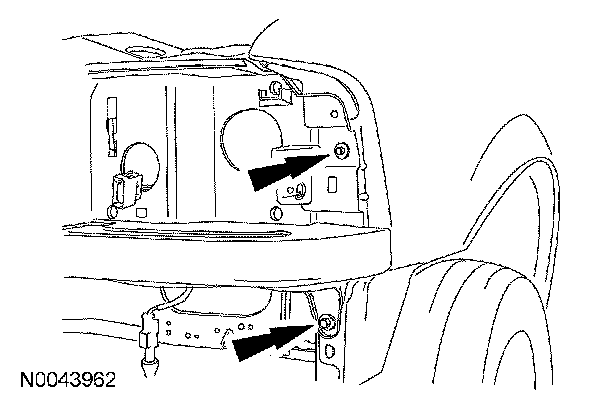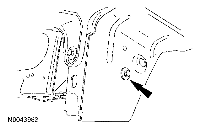 7. Remove the 2 bolts from the front fender-to-grille opening panel.