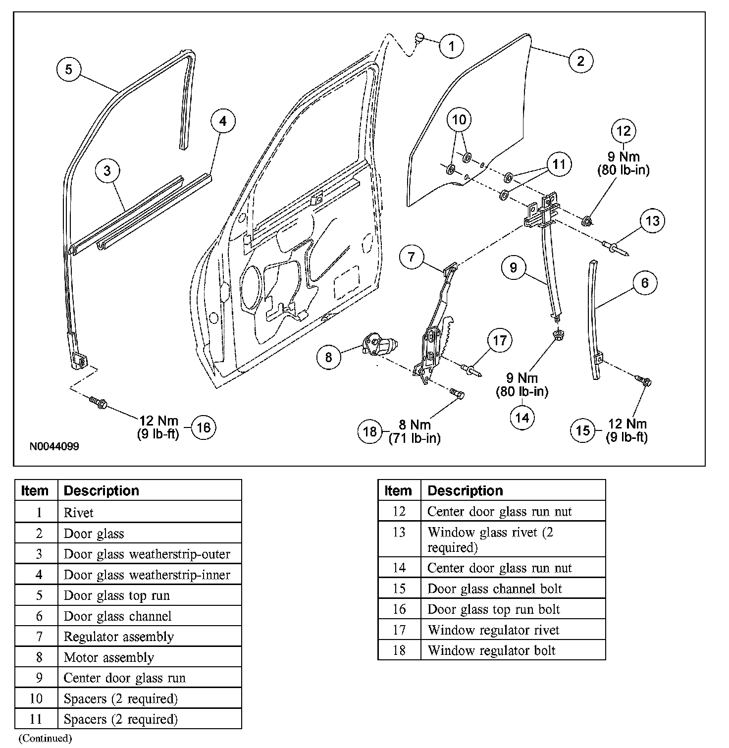 WINDOW REGULATOR AND MOTOR - FRONT DOORSpecial Tool(s):