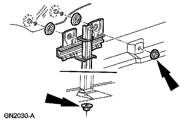 5. Remove the top and bottom center door glass run retainer nuts.