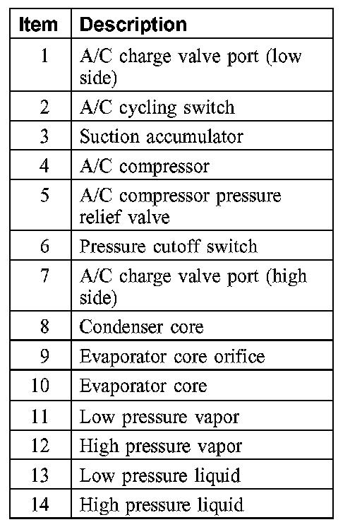 During stabilized conditions (air conditioning system shutdown), the refrigerant is in a vaporized state and pressures are equal throughout the system. When the A/C compressor is in operation, it increases pressure on the refrigerant vapor, raising its temperature. The high-pressure and high-temperature vapor is then released into the top of the condenser core.