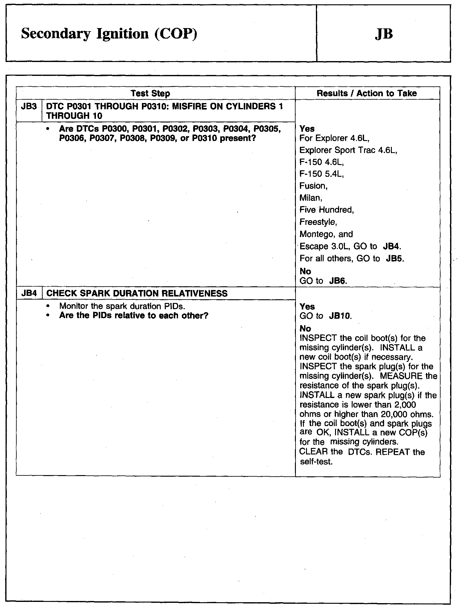 PINPOINT TEST JB: SECONDARY IGNITION (COP)