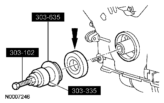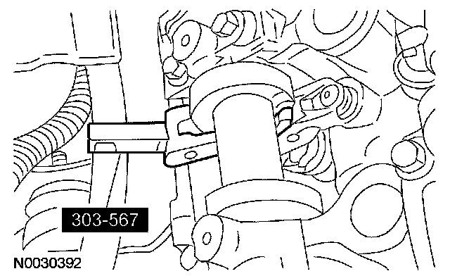 66. NOTE: Use a suitable strap wrench (303-D055) to hold the pulley while tightening the bolt.