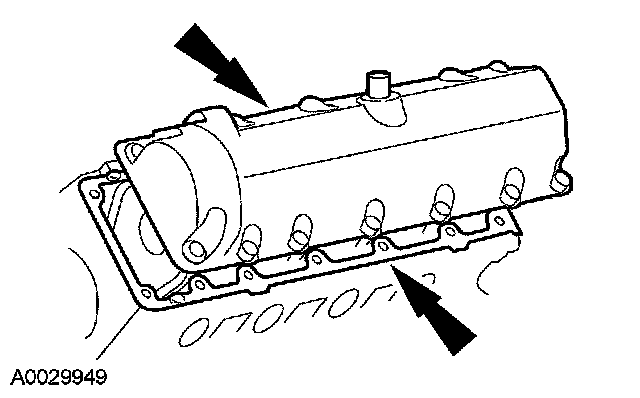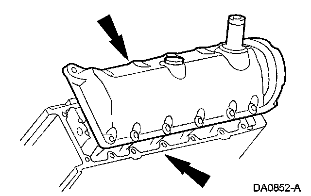 Apply a bead of silicone gasket and sealant along the cylinder head-to-cylinder block surface at the locations shown.