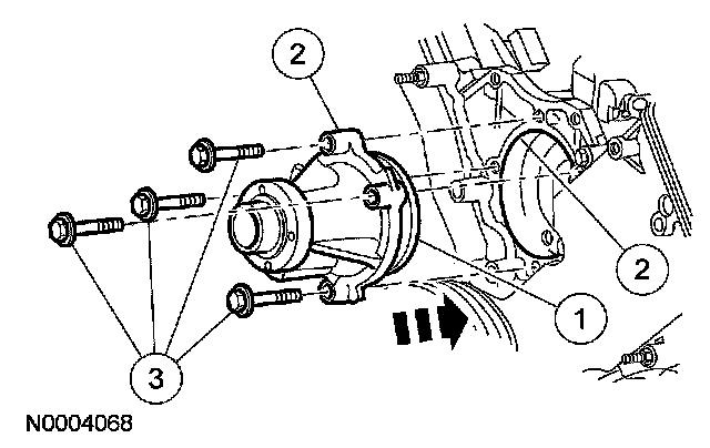 68. CAUTION: Do not rotate the coolant pump housing once the coolant pump has been positioned in the cylinder block. Damage to the O-ring seal will occur.