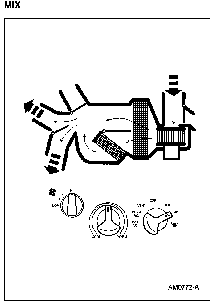 - The A/C compressor will be enabled when MIX is selected to dehumidify the air and reduce windshield fogging.