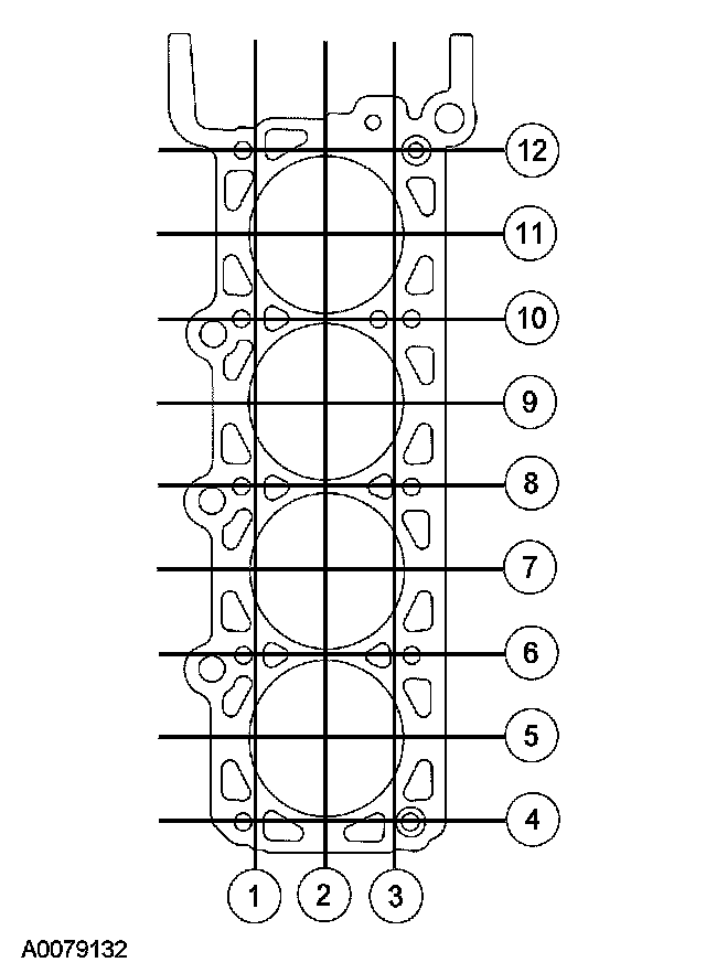 Using a straightedge and a feeler gauge, inspect the cylinder head for flatness in the sequence shown. If the cylinder head is distorted, install a new cylinder head.